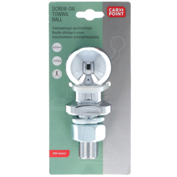 Deze Carpoint schroefkogel met contramoer heeft een diameter van 50mm en kan een gewicht van 2000kg trekken. Kan gebruikt worden om een fietsendrager op de dissel van een caravan te monteren, maar ook in combinatie met een gatenbalk bij een tractor of heftruck. Met E-Keur.