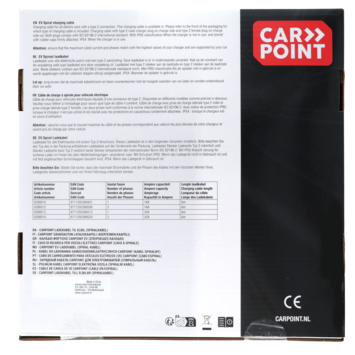 De automarkt is volop in beweging. Met de steeds strengere milieuwetten kiezen veel autorijders steeds vaker voor een elektrische auto. Ook het aantal publieke- en snellaadpunten is de afgelopen jaren drastisch gestegen. Deze toename zorgt ervoor dat ook de vraag naar laadkabels stijgt. Carpoint biedt een ruim assortiment aan van laadkabels voor elektrische voertuigen die zijn getest en gecertificeerd en aan alle elektrische veiligheidseisen voldoen. De producten van Carpoint zijn ontwikkeld met het oog op duurzaamheid. De robuuste constructie zorgt ervoor dat de producten dagelijks kunnen worden gebruikt. Carpoint 3 Fase spiraal laadkabel voor alle elektrische auto’s met een type 2 aansluiting. Met 32 Ampère capaciteit laadt het veilig op via 3 fases. Stekker laadzijde type 2 mannelijk en stekker laadzijde auto type 2 vrouwelijk beide stekkers voldoen aan de IEC 62196-2 internationale standaard norm. Beide stekkers zijn uitgevoerd met een beschermkap. De Carpoint laadkabels zijn ontworpen volgens de IP55-classificatie, waardoor de kabel veilig is om buitenshuis te gebruiken bij alle weersomstandigheden. De totale lengte van 6 meter biedt maximale flexibiliteit. Let op: zorg ervoor dat de maximale kabelstroom en fasen overeenkomen met de hoogste waarden van uw lader en worden ondersteund door uw auto Specificaties: * Spiraal laadkabel elektrische auto type 2 naar type 2 * 32 A * 3 fases * 380-450VAC ± 10% * Lengte 6 meter * Past op alle EV auto's met type 2 connector * Stekker laadzijde: type 2 mannelijk (IEC 62196-2) met beschermkap * Stekker laadzijde auto: type 2 vrouwelijk (IEC 62196-2) met beschermkap * IP55 beschermingsfactor * Isolatieweerstand >1000MOhm * Spanningsweerstand 2000V * Contactweerstand < 0,5 mOhm * Temperatuurstijging pennen <50K * Levensduur >50.000 keer * De trillingsweerstand voldoet aan de vereisten van JDQ53.3 * Kabeltype 5*6mm2 + 2*0.5mm2 * Gebruikstemperatuur -40°C ~ 50°C