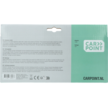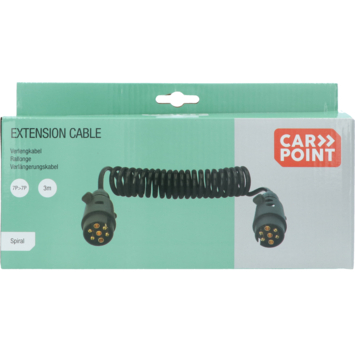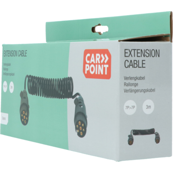 Carpoint 7 aderige trailer spiraal verlengkabel met een kabeldoorsnede van 0,5mm². Deze Carpoint spiraalkabel is ideaal voor een aanhangwagen, trailer of caravan. Door de spiraalvorm is de trailer verlengkabel makkelijk in gebruik. De krulling zorgt ervoor dat de kabel rekbaar en flexibel is en de kabel niet over de grond sleept. De spiraalkabel heeft een minimale lengte van 26 centimeter tot maximaal 3 meter. Met twee 7-polige kunststof stekkers.