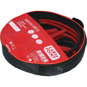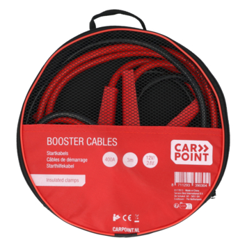 Deze Carpoint startkabels zijn de oplossing als de auto niet meer wil starten door een lege accu. De startkabels zijn geschikt voor 12 en 24 Volt accu’s en belastbaar tot 400 ampère. De lengte van de startkabel is 3 meter met volledig geïsoleerde klemmen. Aansluiten startkabels: Klem de rode startkabel op de +pool van lege accu Verbind de andere rode klem aan de +pool van goede accu Sluit de zwarte startkabel aan op de -pool van de volle accu Zet de andere overgebleven zwarte klem op een massagedeelte van het voertuig met de lege accu, een metalen deel van de motor of ongelakt carrosserie-deel Hierna de motor starten van het voortuig dat hulp biedt en vervolgens de motor starten van het voertuig met de lege accu. Het afkoppelen van de startkabels dient in omgekeerde volgorde te gebeuren. Na gebruik de Carpoint startkabels opbergen in de meegeleverde draagtas en in de auto bewaren zodat u de startkabels altijd bij de hand heeft.