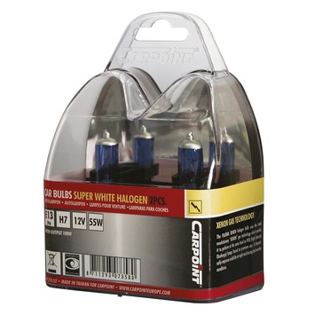 De Carpoint Superwhite Halogeen H7 12V/55W 2 stuks geven een extra fel licht. De lampen zijn gevuld met xenongas die ervoor zorgt dat je een super helder wit licht krijgt. Ze geven op hetzelfde niveau licht als HID-lampen die meestal in duurdere auto’s worden geplaatst. De Superwhite lampen geven 15% meer licht dan een standaard autolamp. De halogeenlampen zijn te gebruiken voor in de koplampen van off-road auto’s of auto’s in de showroom. De lamp heeft een PX26D fitting en een Wattage van 55 W. De gloeilamp van Carpoint zorgt dat niet alleen jij een goed zicht hebt op de weg, maar dat andere jou ook goed zien.