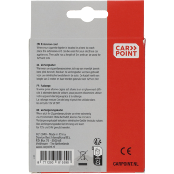 Gebruik deze Carpoint verlengkabel om de via de bestaande sigarettenaansteker