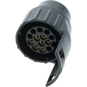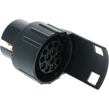 een 13-polige stekker kan aan op de 7-polige stekkerdoos aan de auto of camper.