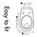 Door de verstelbaarheid in de scharnieren past deze wc-bril op de meeste gangbare toiletpotten met D-vorm, toch raden we je aan de lijntekening goed te bekijken zodat hij netjes past op jouw pot. Tenslotte monteer je de bril met het doordachte 'Fastfix' bevestigingssysteem eenvoudig vanaf de onderkant.