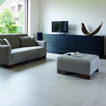 Grijze betonlook vloertegel. Geschikt voor woonkamer, badkamer, keuken en toilet. Ook verkrijgbaar met bijpassende muretto.