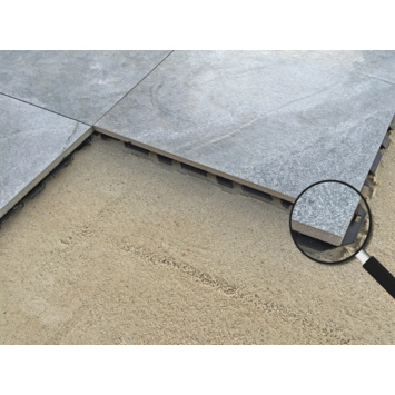 Ceramidrain is dé revolutie op het gebied van keramische terrastegels. Het product heeft namelijk alles in zich! Het combineert de positieve eigenschappen van keramische tegels met het verwerkingsgemak van een betontegel. Daarnaast kan het product regenwater onder je terras bufferen en geeft het langzaam weer af aan de grond (draineren). De bovenlaag van de Ceramidrain bestaat uit een keramische tegel van 16 millimeter dik. Keramische tegels zijn duurzaam en niet of nauwelijks aan verkleuring onderhevig. Bovendien zijn ze slijtvast en niet gevoelig voor krassen. De kunststof onderlaag heeft een open structuur en een wateropslagcapaciteit van maar liefst 22 liter per m². Regenwater wordt in deze onderlaag opgevangen en kan vervolgens langzaam worden afgegeven aan de grond. De twee lagen van de Ceramidrain zitten aan elkaar vast door een ijzersterke, gepatenteerde spreidplugverbinding. De lagen kunnen niet loskomen van elkaar, ook niet met vorst. Dankzij de speciale Plug- & layverbinding schuif je de tegels makelijk in elkaar en is het leggen van de Ceramidrain zeer eenvoudig, mede doordat de tegels met 17 kilogram per stuk licht in gewicht zijn. Ceramidrain-tegels kun je gewoon verwerken in een drainerend (eventueel stabiliserend) zandbed. Ze hebben een afstandhouder van 3 mm die zorgt voor een optimale afvoer van het water. De tegels hoeven niet gevoegd te worden, dit heeft een gunstig kostenaspect. Keramische tegels bevatten verschillende prints. Door deze variatie in nuancering en tekening, ontstaat een mooi, natuurlijk beeld. Zo is iedere vierkante meter bestrating in je tuin uniek.
