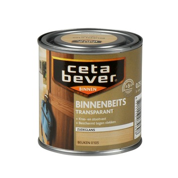 De CetaBever binnenbeits transparant zijdeglans beuken 250 ml is een zijdeglanzende, watergedragen binnenbeits in de kleur beuken voor al je houtwerk binnenshuis. CetaBever binnenbeits beschermt je hout tegen vlekken, vuil en krassen waardoor het langer mooi blijft. Je kunt het gebruiken op kaal of eerder transparant gebeitst hout zoals schroten, deuren, lambriseringen en meubels. CetaBever binnenbeits is sneldrogend en geurarm waardoor je het zonder problemen binnenshuis kunt verwerken. Het geeft je hout een prachtige transparante kleur waarbij het tegelijkertijd de houtnerf accentueert. Met CetaBever binnenbeits combineer je bescherming van je hout met een warme en natuurlijke sfeer.
