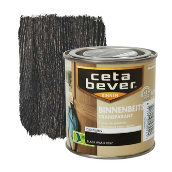 De CetaBever binnenbeits transparant zijdeglans black wash 250 ml is een zijdeglanzende, watergedragen binnenbeits in de kleur black wash voor al je houtwerk binnenshuis. CetaBever binnenbeits beschermt je hout tegen vlekken, vuil en krassen waardoor het langer mooi blijft. Je kunt het gebruiken op kaal of eerder transparant gebeitst hout zoals schroten, deuren, lambriseringen en meubels. CetaBever binnenbeits is sneldrogend en geurarm waardoor je het zonder problemen binnenshuis kunt verwerken. Het geeft je hout een prachtige transparante kleur waarbij het tegelijkertijd de houtnerf accentueert. Met CetaBever binnenbeits combineer je bescherming van je hout met een warme en natuurlijke sfeer.