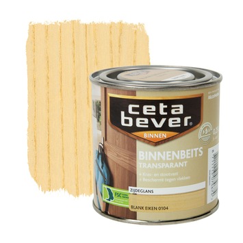 De CetaBever binnenbeits transparant zijdeglans blank eiken 250 ml is een zijdeglanzende, watergedragen binnenbeits voor al je houtwerk binnenshuis. CetaBever binnenbeits beschermt je hout tegen vlekken, vuil en krassen waardoor het langer mooi blijft. Je kunt het gebruiken op kaal of eerder transparant gebeitst hout zoals schroten, deuren, lambriseringen en meubels. CetaBever binnenbeits is sneldrogend en geurarm waardoor je het zonder problemen binnenshuis kunt verwerken. Het geeft je hout een prachtige transparante kleur waarbij het tegelijkertijd de houtnerf accentueert. Met CetaBever binnenbeits combineer je bescherming van je hout met een warme en natuurlijke sfeer.