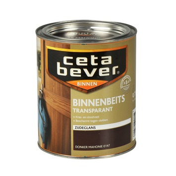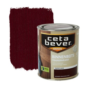 De CetaBever binnenbeits transparant zijdeglans donker mahonie 750 ml is een zijdeglanzende, watergedragen binnenbeits in de kleur donker mahonie voor al je houtwerk binnenshuis. CetaBever binnenbeits beschermt je hout tegen vlekken, vuil en krassen waardoor het langer mooi blijft. Je kunt het gebruiken op kaal of eerder transparant gebeitst hout zoals schroten, deuren, lambriseringen en meubels. CetaBever binnenbeits is sneldrogend en geurarm waardoor je het zonder problemen binnenshuis kunt verwerken. Het geeft je hout een prachtige transparante kleur waarbij het tegelijkertijd de houtnerf accentueert. Met CetaBever binnenbeits combineer je bescherming van je hout met een warme en natuurlijke sfeer.