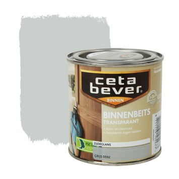 De CetaBever binnenbeits transparant zijdeglans grijs 250 ml is een zijdeglanzende, watergedragen binnenbeits in de kleur grijs voor al je houtwerk binnenshuis. CetaBever binnenbeits beschermt je hout tegen vlekken, vuil en krassen waardoor het langer mooi blijft. Je kunt het gebruiken op kaal of eerder transparant gebeitst hout zoals schroten, deuren, lambriseringen en meubels. CetaBever binnenbeits is sneldrogend en geurarm waardoor je het zonder problemen binnenshuis kunt verwerken. Het geeft je hout een prachtige transparante kleur waarbij het tegelijkertijd de houtnerf accentueert. Met CetaBever binnenbeits combineer je bescherming van je hout met een warme en natuurlijke sfeer.