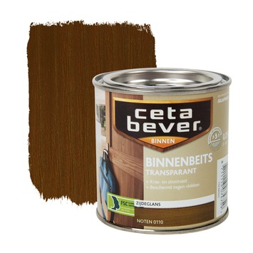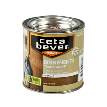 De CetaBever binnenbeits transparant zijdeglans noten 250 ml is een zijdeglanzende, watergedragen binnenbeits in de kleur noten voor al je houtwerk binnenshuis. CetaBever binnenbeits beschermt je hout tegen vlekken, vuil en krassen waardoor het langer mooi blijft. Je kunt het gebruiken op kaal of eerder transparant gebeitst hout zoals schroten, deuren, lambriseringen en meubels. CetaBever binnenbeits is sneldrogend en geurarm waardoor je het zonder problemen binnenshuis kunt verwerken. Het geeft je hout een prachtige transparante kleur waarbij het tegelijkertijd de houtnerf accentueert. Met CetaBever binnenbeits combineer je bescherming van je hout met een warme en natuurlijke sfeer.