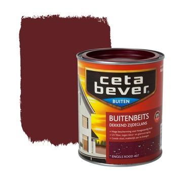 CetaBever buitenbeits engels rood dekkend 750 ml is een zijdeglanzende, topkwaliteit dekkende beits voor al je onbehandelde hout buiten. Het biedt de juiste balans tussen vochtregulering en UV-bescherming en is daarom heel geschikt voor alle gevelbetimmeringen. CetaBever buitenbeits dekkend bevat een UV-filter waardoor je houtwerk beschermd wordt tegen UV-straling en daardoor langer mooi en zijdeglanzend blijft. Het is heel geschikt om met een kwast of roller aan te brengen op grote houtoppervlakken zoals gevelbetimmeringen, tuinhuizen en woonboten. Door uitstekende hechting en hoge laagdikte bereik je met minder lagen CetaBever buitenbeits engels rood dekkend 750 ml, zonder grondverf, een zeer duurzame bescherming en een uitstekende dekking.