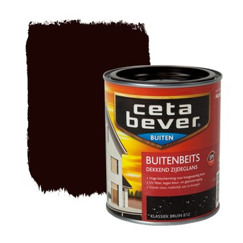 CetaBever buitenbeits klassiek bruin dekkend 750 ml is een zijdeglanzende, topkwaliteit dekkende beits voor al je onbehandelde hout buiten. Het biedt de juiste balans tussen vochtregulering en UV-bescherming en is daarom heel geschikt voor alle gevelbetimmeringen. CetaBever buitenbeits dekkend bevat een UV-filter waardoor je houtwerk beschermd wordt tegen UV-straling en daardoor langer mooi en zijdeglanzend blijft. Het is heel geschikt om met een kwast of roller aan te brengen op grote houtoppervlakken zoals gevelbetimmeringen, tuinhuizen en woonboten. Door uitstekende hechting en hoge laagdikte bereik je met minder lagen CetaBever buitenbeits klassiek bruin dekkend 750 ml, zonder grondverf, een zeer duurzame bescherming en een uitstekende dekking.