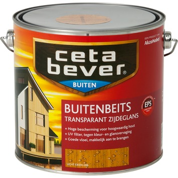 CetaBever buitenbeits licht eiken transparant 2,5 l is een zijdeglanzende, topkwaliteit transparante beits voor al je onbehandelde hout buiten. Het biedt de juiste balans tussen vochtregulering en UV-bescherming en is daarom heel geschikt voor alle gevelbetimmeringen. CetaBever transparante buitenbeits bevat een UV-filter waardoor je houtwerk beschermd wordt tegen UV-straling. Hierdoor wordt verkleuring voorkomen en blijft je houtwerk langer mooi. Het is heel geschikt om met een kwast of roller aan te brengen op grote houtoppervlakken zoals gevelbetimmeringen, tuinhuizen en woonboten. Je kunt het ook gebruiken als zijdeglanzende afwerklaag over Cetabever's transparante tuinbeits. Door de uitstekende hechting en hoge laagdikte bereik je met minder lagen CetaBever buitenbeits licht eiken transparant 2,5 l een zeer duurzame bescherming.