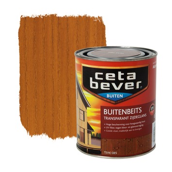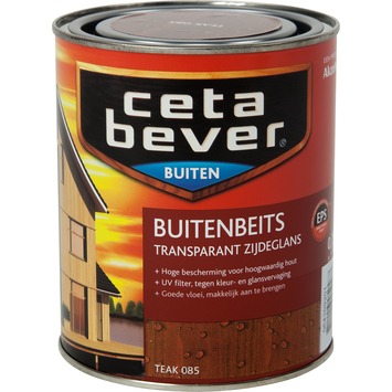 CetaBever buitenbeits teak transparant 750 ml is een zijdeglanzende, topkwaliteit transparante beits voor al je onbehandelde hout buiten. Het biedt de juiste balans tussen vochtregulering en UV-bescherming en is daarom heel geschikt voor alle gevelbetimmeringen. CetaBever transparante buitenbeits bevat een UV-filter waardoor je houtwerk beschermd wordt tegen UV-straling. Hierdoor wordt verkleuring voorkomen en blijft je houtwerk langer mooi. Het is heel geschikt om met een kwast of roller aan te brengen op grote houtoppervlakken zoals gevelbetimmeringen, tuinhuizen en woonboten. Je kunt het ook gebruiken als zijdeglanzende afwerklaag over Cetabever's transparante tuinbeits. Door de uitstekende hechting en hoge laagdikte bereik je met minder lagen CetaBever buitenbeits teak transparant 750 ml een zeer duurzame bescherming.