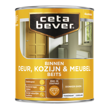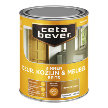 CetaBever Deur, Kozijn & Meubelbeits zijdeglans transparant donker eiken 750 ml is een watergedragen binnenbeits die je hout een natuurlijke uitstraling geeft. Het trekt in het hout en maakt het kras- en stootvast, terwijl het ook tegen vlekken beschermt. De zijdeglans afwerking laat de houtnerf mooi zien en geeft het hout een prachtige transparante kleur. Het is sneldrogend, zodat je snel verder kunt werken. Verkrijgbaar in diverse kleuren.