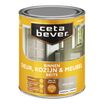 CetaBever Deur, Kozijn & Meubelbeits zijdeglans transparant grey wash 750 ml is een watergedragen binnenbeits die je hout een natuurlijke uitstraling geeft. Het trekt in het hout en maakt het kras- en stootvast, terwijl het ook tegen vlekken beschermt. De zijdeglans afwerking laat de houtnerf mooi zien en geeft het hout een prachtige transparante kleur. Het is sneldrogend, zodat je snel verder kunt werken. Verkrijgbaar in diverse kleuren.