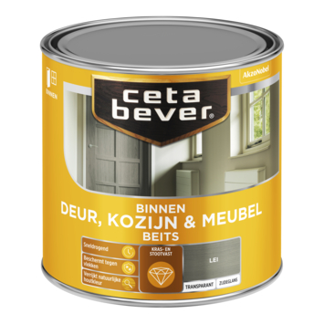 CetaBever Deur, Kozijn & Meubelbeits zijdeglans transparant lei 250 ml is een watergedragen binnenbeits die je hout een natuurlijke uitstraling geeft. Het trekt in het hout en maakt het kras- en stootvast, terwijl het ook tegen vlekken beschermt. De zijdeglans afwerking laat de houtnerf mooi zien en geeft het hout een prachtige transparante kleur. Het is sneldrogend, zodat je snel verder kunt werken. Verkrijgbaar in diverse kleuren.