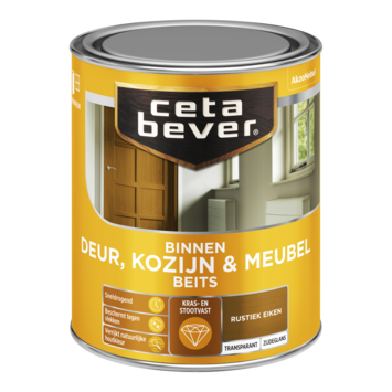 CetaBever Deur, Kozijn & Meubelbeits zijdeglans transparant rustiek eiken 750 ml is een watergedragen binnenbeits die je hout een natuurlijke uitstraling geeft. Het trekt in het hout en maakt het kras- en stootvast, terwijl het ook tegen vlekken beschermt. De zijdeglans afwerking laat de houtnerf mooi zien en geeft het hout een prachtige transparante kleur. Het is sneldrogend, zodat je snel verder kunt werken. Verkrijgbaar in diverse kleuren.