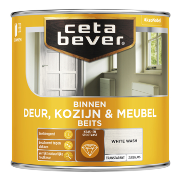 CetaBever Deur, Kozijn & Meubelbeits zijdeglans transparant white wash 250 ml
