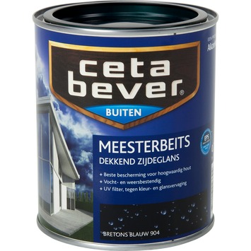CetaBever Meesterbeits bretons blauw dekkend 750 ml is een zijdeglanzende, oplosmiddelarme, topkwaliteit beits voor buiten. Met dekkende CetaBever Meesterbeits bescherm je al het houtwerk aan je huis zoals deuren, kozijnen en luiken. Door de uitstekende hechting en hoge laagdikte bereik je met minder lagen een zeer duurzame bescherming. Dat betekent minder werk en toch jarenlange bescherming. CetaBever Meesterbeits bevat een UV-filter waardoor het houtwerk beschermd wordt tegen UV-straling en daardoor langer mooi en zijdeglanzend blijft. CetaBever Meesterbeits is vochtregulerend en duurzaam elastisch waardoor de beits de werking van het hout langdurig kan volgen. CetaBever Meesterbeits Dekkend is leverbaar in veel kleuren waardoor je houtwerk niet alleen duurzaam beschermt maar ook veel mooier wordt.