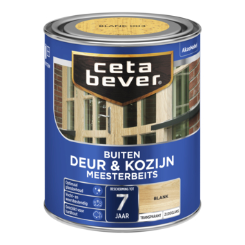 CetaBever Meesterbeits Deur & Kozijn zijdeglans transparant blank 750 ml is een sterke buitenbeits die je hout langdurig beschermt. De formule is vocht- en weerbestendig, waardoor regen en wind geen kans krijgen. Je geniet tot 7 jaar van bescherming en een zijdeglans afwerking met optimaal glansbehoud. De beits is oplosmiddelhoudend en kan gebruikt worden op verschillende houtsoorten, waaronder hardhout. Bovendien is de beits verkrijgbaar in diverse kleuren, zodat je de juiste uitstraling voor je houtwerk kunt kiezen.