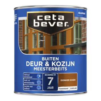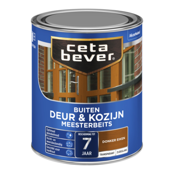 CetaBever Meesterbeits Deur & Kozijn zijdeglans transparant donker eiken 750 ml is een sterke buitenbeits die je hout langdurig beschermt. De formule is vocht- en weerbestendig, waardoor regen en wind geen kans krijgen. Je geniet tot 7 jaar van bescherming en een zijdeglans afwerking met optimaal glansbehoud. De beits is oplosmiddelhoudend en kan gebruikt worden op verschillende houtsoorten, waaronder hardhout. Bovendien is de beits verkrijgbaar in diverse kleuren, zodat je de juiste uitstraling voor je houtwerk kunt kiezen.