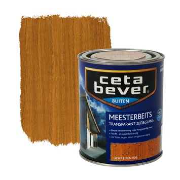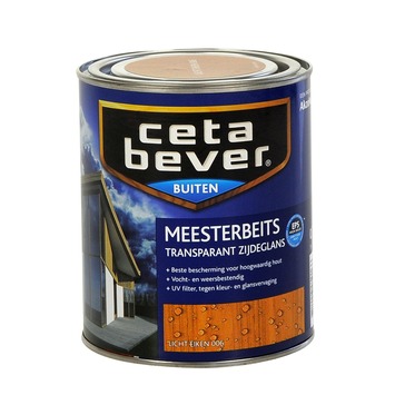 CetaBever Meesterbeits licht eiken transparant 750 ml is een zijdeglanzende, oplosmiddelarme, topkwaliteit beits voor buiten. CetaBever Meesterbeits beschermt het houtwerk aan je huis zoals deuren, kozijnen en luiken. Door de uitstekende hechting en hoge laagdikte bereik je met minder lagen een zeer duurzame bescherming. Dat betekent minder werk en toch jarenlange bescherming. CetaBever Meesterbeits bevat een UV-filter waardoor je houtwerk beschermd wordt tegen UV-straling en daardoor langer mooi en zijdeglanzend blijft. CetaBever Meesterbeits is vochtregulerend en duurzaam elastisch waardoor de beits de werking van het hout langdurig kan volgen. CetaBever transparante Meesterbeits geeft je houtwerk een prachtige transparante kleur waardoor je bescherming van je hout met een natuurlijke uitstraling combineert.