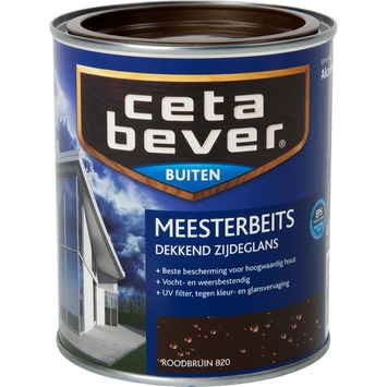 CetaBever Meesterbeits roodbruin dekkend 750 ml is een zijdeglanzende, oplosmiddelarme, topkwaliteit beits voor buiten. Met dekkende CetaBever Meesterbeits bescherm je al het houtwerk aan je huis zoals deuren, kozijnen en luiken. Door de uitstekende hechting en hoge laagdikte bereik je met minder lagen een zeer duurzame bescherming. Dat betekent minder werk en toch jarenlange bescherming. CetaBever Meesterbeits bevat een UV-filter waardoor het houtwerk beschermd wordt tegen UV-straling en daardoor langer mooi en zijdeglanzend blijft. CetaBever Meesterbeits is vochtregulerend en duurzaam elastisch waardoor de beits de werking van het hout langdurig kan volgen. CetaBever Meesterbeits Dekkend is leverbaar in veel kleuren waardoor je houtwerk niet alleen duurzaam beschermt maar ook veel mooier wordt.