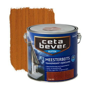 CetaBever Meesterbeits teak transparant 2,5 l is een zijdeglanzende, oplosmiddelarme, topkwaliteit beits voor buiten. CetaBever Meesterbeits beschermt het houtwerk aan je huis zoals deuren, kozijnen en luiken. Door de uitstekende hechting en hoge laagdikte bereik je met minder lagen een zeer duurzame bescherming. Dat betekent minder werk en toch jarenlange bescherming. CetaBever Meesterbeits bevat een UV-filter waardoor je houtwerk beschermd wordt tegen UV-straling en daardoor langer mooi en zijdeglanzend blijft. CetaBever Meesterbeits is vochtregulerend en duurzaam elastisch waardoor de beits de werking van het hout langdurig kan volgen. CetaBever transparante Meesterbeits geeft je houtwerk een prachtige transparante kleur waardoor je bescherming van je hout met een natuurlijke uitstraling combineert.