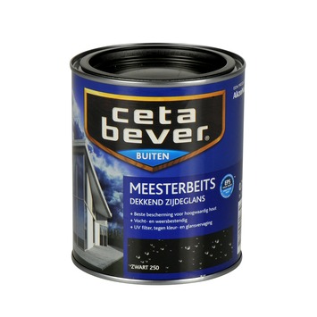 CetaBever Meesterbeits zwart dekkend 750 ml is een zijdeglanzende, oplosmiddelarme, topkwaliteit beits voor buiten. Met dekkende CetaBever Meesterbeits bescherm je al het houtwerk aan je huis zoals deuren, kozijnen en luiken. Door de uitstekende hechting en hoge laagdikte bereik je met minder lagen een zeer duurzame bescherming. Dat betekent minder werk en toch jarenlange bescherming. CetaBever Meesterbeits bevat een UV-filter waardoor het houtwerk beschermd wordt tegen UV-straling en daardoor langer mooi en zijdeglanzend blijft. CetaBever Meesterbeits is vochtregulerend en duurzaam elastisch waardoor de beits de werking van het hout langdurig kan volgen. CetaBever Meesterbeits Dekkend is leverbaar in veel kleuren waardoor je houtwerk niet alleen duurzaam beschermt maar ook veel mooier wordt.