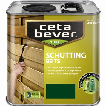 CetaBever schuttingbeits groen 2,5 l is een waterverdunbare, semi-dekkende, vochtregulerende houtbescherming voor buiten. Het heeft een sterk impregnerende werking waardoor het diep in het hout dringt en het je hard- en zachthouten schuttingdelen optimaal beschermt tegen het Hollandse klimaat. CetaBever schuttingbeits is waterafstotend en vochtregulerend waardoor onder andere houtrot en bladdervorming wordt voorkomen. Je kunt het eenvoudig en snel aanbrengen met de CetaBever Tuinhout Sprayer. In minder dan 1 minuut behandel je 1 m². Bovendien verdeelt de CetaBever Tuinhout Sprayer het product in een waaier, zodat het oppervlak gelijkmatig wordt behandeld. CetaBever schuttingbeits zorgt voor een optimale aankleuring van de ondergrond en voor langdurig kleurbehoud.