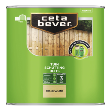 Met CetaBever Schuttingbeits transparant 2,5 liter bescherm je je schutting tegen regen en zon. Deze watergedragen beits trekt diep in het hout en zorgt voor een waterafstotende laag. Geschikt voor zowel hardhout als zachthout en tot 3 jaar beschermend. De beits is verkrijgbaar in verschillende transparante kleuren, zodat je de gewenste uitstraling kunt kiezen. De snelle droging maakt het aanbrengen eenvoudig. Let op: niet geschikt voor gelakte oppervlakken. De uiteindelijke beschermingsduur hangt af van zonlicht, houtkwaliteit en het aantal aangebrachte lagen.