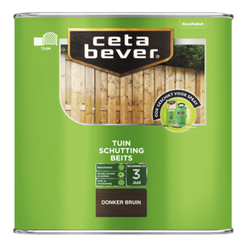 Met CetaBever Schuttingbeits transparant donkerbruin 2,5 liter bescherm je je schutting tegen regen en zon. Deze watergedragen beits trekt diep in het hout en zorgt voor een waterafstotende laag. Geschikt voor zowel hardhout als zachthout en tot 3 jaar beschermend. De beits is verkrijgbaar in verschillende transparante kleuren, zodat je de gewenste uitstraling kunt kiezen. De snelle droging maakt het aanbrengen eenvoudig. Let op: niet geschikt voor gelakte oppervlakken. De uiteindelijke beschermingsduur hangt af van zonlicht, houtkwaliteit en het aantal aangebrachte lagen.