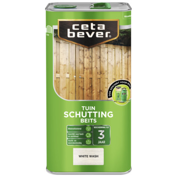 Cetabever schuttingbeits transparant white wash 5 l is een watergedragen beits, verkrijgbaar in verschillende transparante kleuren. Schuttingbeits is een waterafstotende beits die de schutting beschermt tegen weersinvloeden, zoals regen en zon. CetaBever schuttingbeits heeft een snelle droging.