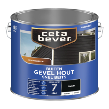 CetaBever Snelbeits Gevel Hout zijdemat dekkend zwart 2,5 liter is een watergedragen beits die je hout beschermt tegen weer en vocht. Deze beits is geschikt voor zachthout en biedt bescherming tot wel 7 jaar. Het resultaat is een mooie zijdemat afwerking die je in elke gewenste dekkende kleur kunt mengen. De beits is na 4 uur overschilderbaar en zorgt ervoor dat je hout snel beschermd is, binnen een dag.