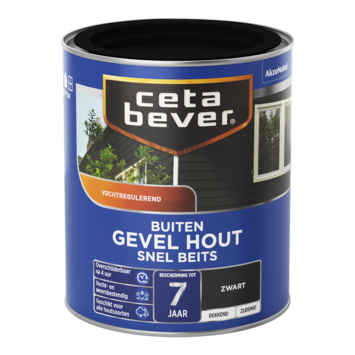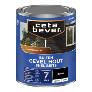 CetaBever Snelbeits Gevel Hout zijdemat dekkend zwart 750 ml is een watergedragen beits die je hout beschermt tegen weer en vocht. Deze beits is geschikt voor zachthout en biedt bescherming tot wel 7 jaar. Het resultaat is een mooie zijdemat afwerking die je in elke gewenste dekkende kleur kunt mengen. De beits is na 4 uur overschilderbaar en zorgt ervoor dat je hout snel beschermd is, binnen een dag.