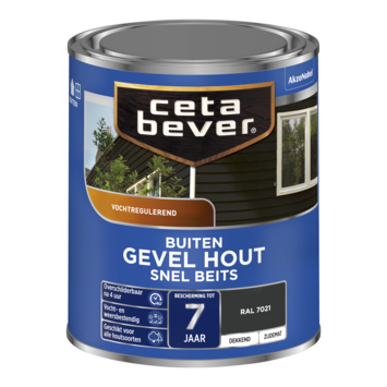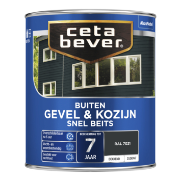 CetaBever Snelbeits Gevel & Kozijn zijdemat dekkend RAL 7021 zwartgrijs 750 ml is voor buiten en geschikt als dekkende afwerking op kaal of eerder dekkend afgewerkt hout. CetaBever Gevel & Kozijn Snelbeits is met name geschikt voor het beschermen van zachthout ofwel niet-maatvast houtwerk zoals gevelbetimmeringen en rabatdelen. Dit product is watergedragen en daardoor zeer elastisch en minder belastend voor het milieu.