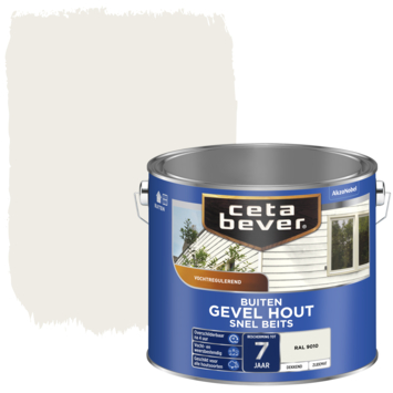 CetaBever Snelbeits Gevel & Kozijn zijdemat dekkend RAL 9010 gebroken wit 2,5 liter is een watergedragen buitenbeits, verkrijgbaar in diverse kleuren met een mooi zijdemat eindresultaat en te mengen in iedere gewenste kleur. Met dekkende Snelbeits kun je jouw hout binnen een dag langdurig beschermen tegen weersinvloeden.