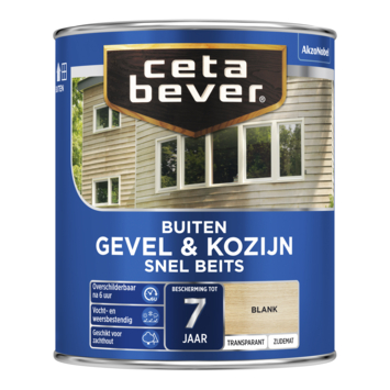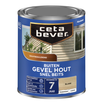 CetaBever Snelbeits Gevel & Kozijn zijdemat transparant blank 750 ml is voor buiten en geschikt als afwerking op kaal of eerder geschilderd hout. CetaBever Gevel & Kozijn Snelbeits is met name geschikt voor het beschermen van zachthout ofwel niet-maatvast houtwerk zoals gevelbetimmeringen en rabatdelen. Dit product is watergedragen en daardoor zeer elastisch en minder belastend voor het milieu. Verkrijgbaar in diverse kant-en-klaar kleuren, maar ook beschikbaar in vele tinten op de mengmachine!