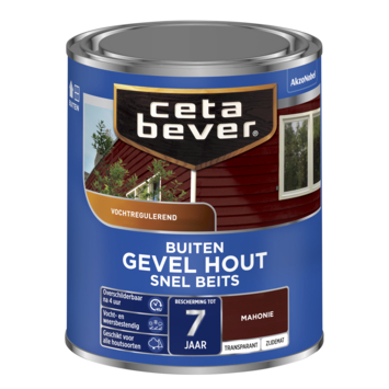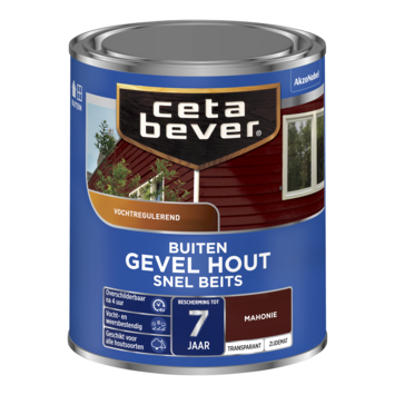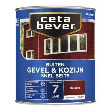 CetaBever Snelbeits Gevel & Kozijn mahonie 750 ml is voor buiten en geschikt als afwerking op kaal of eerder geschilderd hout. CetaBever Gevel & Kozijn Snelbeits is met name geschikt voor het beschermen van zachthout ofwel niet-maatvast houtwerk zoals gevelbetimmeringen en rabatdelen. Dit product is watergedragen en daardoor zeer elastisch en minder belastend voor het milieu. Verkrijgbaar in diverse kant-en-klaar kleuren, maar ook beschikbaar in vele tinten op de mengmachine!