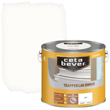CetaBever Trappenlak dekkend wit zijdeglans 2,5 liter is een watergedragen lak verkrijgbaar in wit en RAL 9010. Het beschermt en verzorgt uw hout en geeft uw hout een prachtige dekkende eindlaag. CetaBever Trappenlak is ook verkrijgbaar als transparante variant.