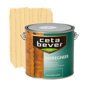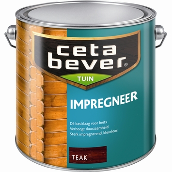 CetaBever tuin zijdeglans impregneer kleurloos 2,5 l is een transparant, vochtregulerend impregneermiddel voor buiten. Gebruik het als basislaag onder de transparante CetaBever beitsen ter verhoging van de duurzaamheid. CetaBever impregneer is zeer geschikt voor toepassing op kozijnen, gevelbetimmering, houten stacaravans, blokhutten, schuttingen en ander tuinhout. Het heeft een sterk impregnerende werking en is vochtregulerend waardoor het houtwerk optimaal wordt beschermd tegen het Hollandse klimaat. CetaBever tuin zijdeglans impregneer kleurloos 2,5 l is niet alleen beschermend maar benadrukt ook de natuurlijke kleur van het hout waardoor het je houtwerk mooier maakt.