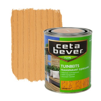 CetaBever tuinbeits grenen transparant 750 ml is een zijdeglanzende, vochtregulerende, transparante beits voor al je houtwerk buiten. Het heeft een sterk impregnerende werking waardoor het diep in het hout dringt en al het houtwerk in je tuin optimaal beschermt tegen het Hollandse klimaat. CetaBever transparante tuinbeits is vochtregulerend waardoor onder andere houtrot en bladdervorming wordt voorkomen. Door het sterk impregnerende vermogen ontstaat er een optimale aankleuring van de ondergrond. Met CetaBever transparante tuinbeits maak je je tuinmeubilair, schuren, schuttingen, steigers en vlonders dus niet alleen sterker maar ook mooier.