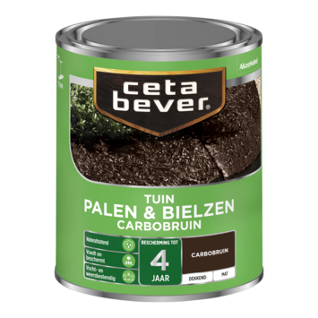 CetaBever Palen & Bielzen Carbobruin is een dekkende, terpentine verdunbare matte beits voor buiten. Deze matte beits is waterafstotend en vocht- en weersbestendig. Geschikt als dekkende afwerking op kaal of eerder met carbolineum of zwarte teer behandelde palen, bielzen of geïmpregneerde rolborders.