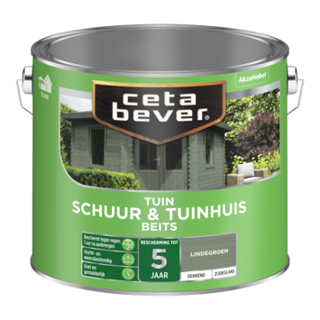CetaBever Tuinbeits Schuur & Tuinhuis dekkend beits lindegroen 2,5 liter is een hoogwaardige watergedragen beits. Deze beschermt het schilderwerk en hout al na 1 uur na aanbrengen tegen regen en vocht, doordat er een waterdichte afsluiting op de buitenste laag van de beits wordt gevormd. Tuinbeits Schuur & Tuinhuis is beschikbaar in zowel dekkende als transparante kleuren.