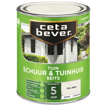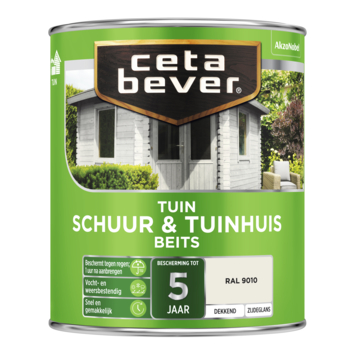 CetaBever Tuinbeits Schuur & Tuinhuis zijdeglans dekkend RAL 9010 gebroken wit 750 ml26.99