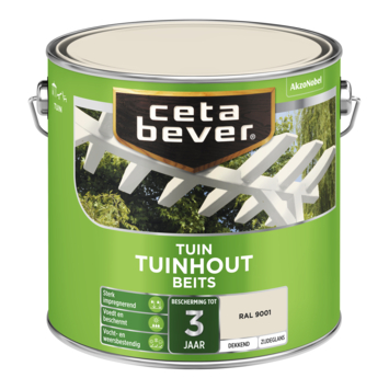 CetaBever Tuinhoutbeits zijdeglans dekkend RAL 9001 crème wit 2,5 liter