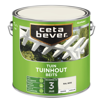 CetaBever Tuinhoutbeits zijdeglans dekkend RAL 9010 gebroken wit 2,5 liter dringt diep in het hout, is vochtregulerend en waterafstotend en biedt tot 3 jaar bescherming van binnenuit. CetaBever Dekkend Tuinhoutbeits is ideaal voor het beschermen van zowel hard- als zachthouten pergola’s, speeltoestellen en ander tuinhout, zoals tuinmeubilair en schuttingen. Deze beits is verkrijgbaar als mengverf, zodat je elke gewenste kleur kunt bestellen, inclusief kleuren van Flexa, Sikkens en Sigma.
